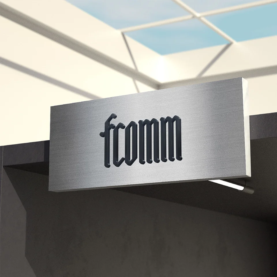 Fcomm – finansinių komunikacijų agentūra, išsiskirianti precizika, nuoseklumu ir aiškumu. Šias vertybes atspindi ir logotipas – modernus gotikinio šrifto variantas, kuriame itin aukštos, pailgos raidės simbolizuoja stabilumą ir tikslumą. Nors formos griežtos, apvalinti kampai suteikia subtilaus švelnumo ir modernumo. Rezultatas – minimalistinis, išraiškingas ženklas, perteikiantis agentūros profesionalumą ir pasitikėjimą.